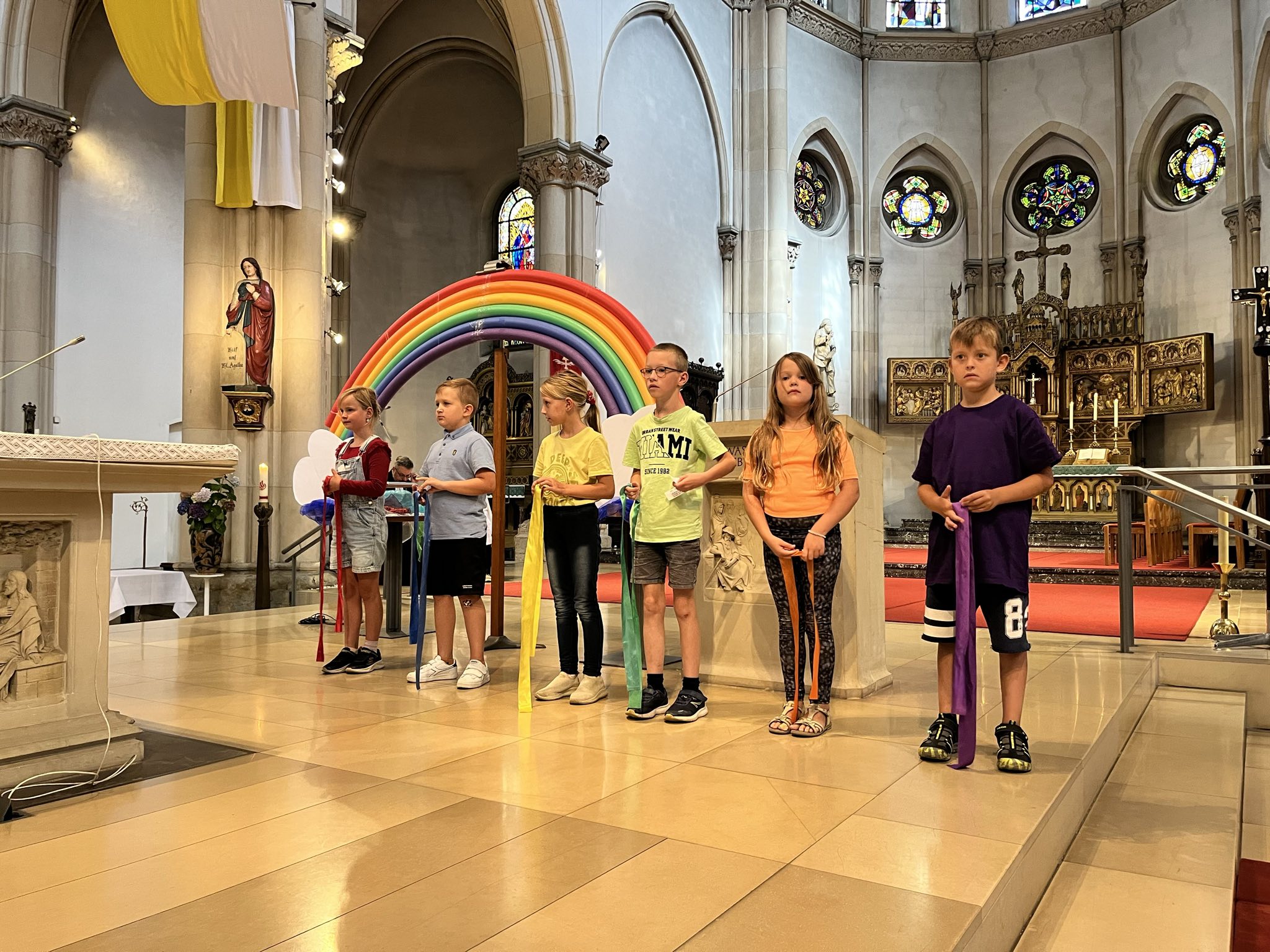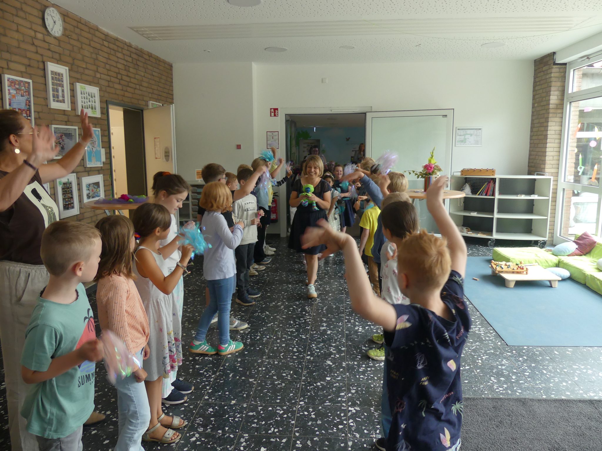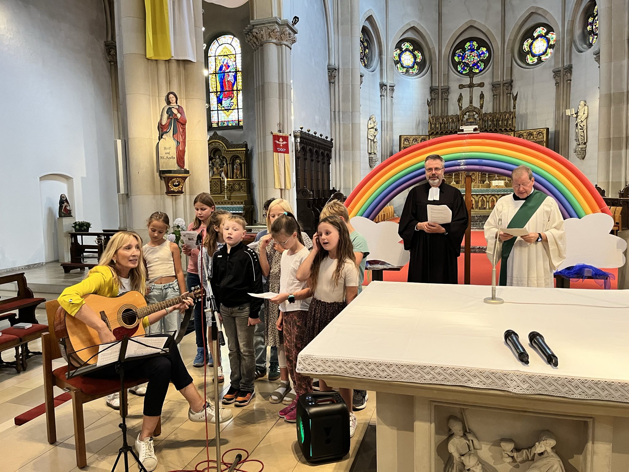 Mit einem fröhlichen und farbenfrohen Gottesdienst und zwei persönlichen Einschulungsfeiern in unserer Aula wurden gestern und heute die neuen Erstklässler an der Paul-Gerhardt-Schule begrüßt. Bereits am Mittwochnachmittag feierten alle Erstklässler gemeinsam mit ihren Eltern, Großeltern und Freunden einen ökumenischen Gottesdienst in der St. Agatha-Kirche. Heute morgen feierten die Klassen 1a, 1b und 1c in der Aula weiter und hörten die Geschichte „Du bist jetzt ein Schulkind. Und du gehörst zu uns!“. Diese wurde ihnen von ihren zukünftigen Paten, den Schülerinnen und Schülern der 3. Klassen, vorgetragen. Im Anschluss hatten die Kinder ihre allererste Schulstunde in ihrem Klassenraum. Wir, das sind alle Kinder, Lehrerinnen und Lehrer und Mitarbeiterinnen und Mitarbeiter, heißen die I-Männchen herzlich willkommen und wünschen ihnen eine tolle Schulzeit an der Paul-Gerhardt-Schule!